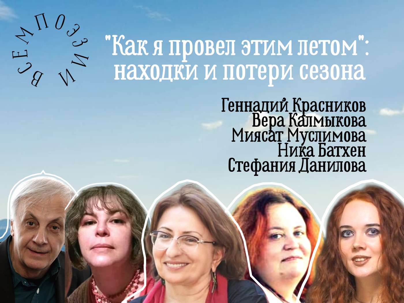 Мы задали вопросы художественному совету журнала Всемпоэзии.рф на тему "Главное открытие и главная потеря лета-2025 для вас". Ответами могло быть что угодно: поэт, подборка, сборник стихов, проект, идея, наметившаяся тенденция, реформа существующего уклада - главное, чтобы это касалось поэзии. Впечатлениями делятся доцент Литературного института и член жюри премии имени Андрея Дементьева Геннадий КРАСНИКОВ, кандидат филологических наук Вера КАЛМЫКОВА, президент Клуба писателей Кавказа Миясат МУСЛИМОВА, ведущая курса интуитивной поэзии Ника БАТХЕН, основатель всемпоэзии.рф и преподаватель РУДН Стефания ДАНИЛОВА.